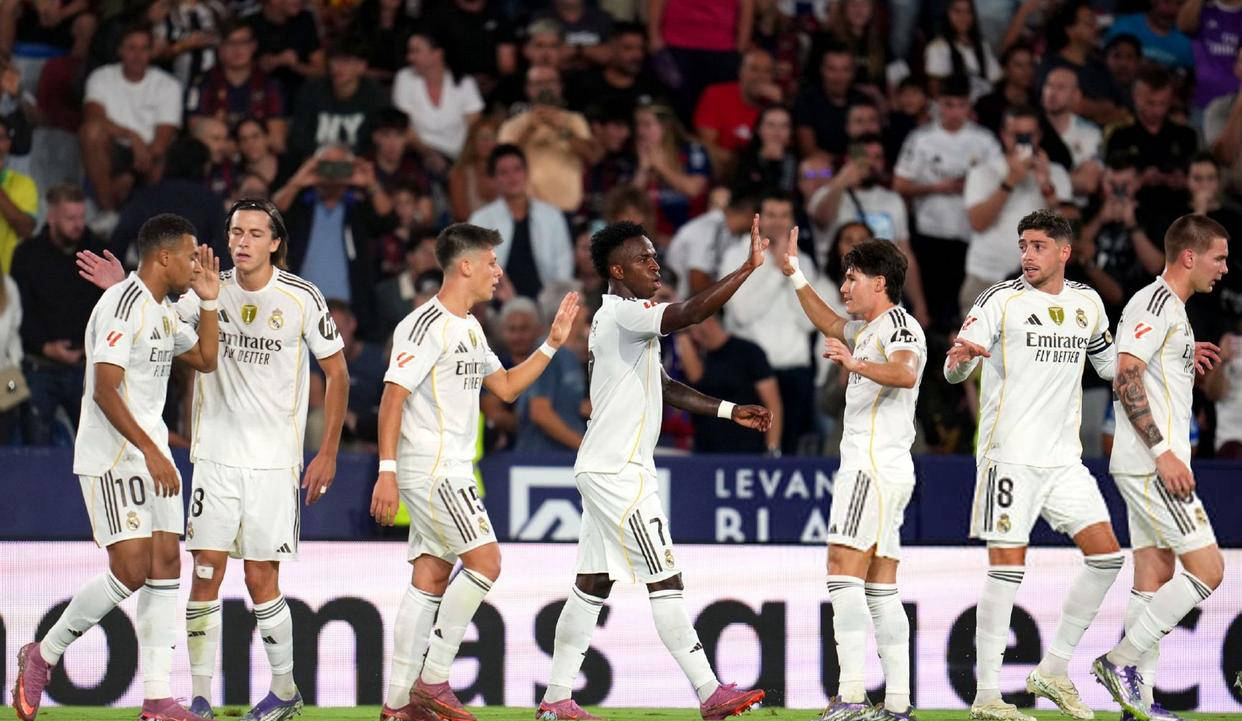2025-26赛季西甲联赛进行到第6轮,皇家马德里客场挑战莱万特。全场比赛,皇马凭借维尼修斯和马斯坦托诺各入1球,以及姆巴佩的双响,最终4-1取得胜利。